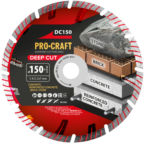 Diamantový řezný kotouč Procraft DC150 je navržen pro rychlé a efektivní řezání tvrdých materiálů s dlouhou životností a vysokou spolehlivostí. Vhodný pro profesionální využití i náročné domácí projekty.