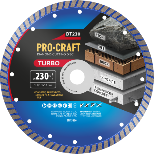 Diamantový řezný kotouč Procraft DT230 je univerzální nástroj určený pro tvrdé i středně tvrdé materiály, který nabízí vysoký výkon, plynulé řezání a dlouhou životnost. Díky lisovaným segmentům a jejich pevnému spojení s tělem kotouče je ideální pro méně i středně náročné řezné práce.